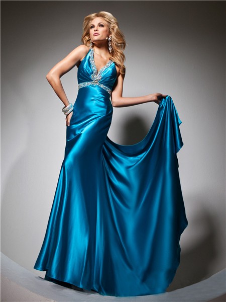 Sexy-V-Neck-Backless-Long-Blue-Silk-Beading-Glitter-Prom-Dress-With-Train
