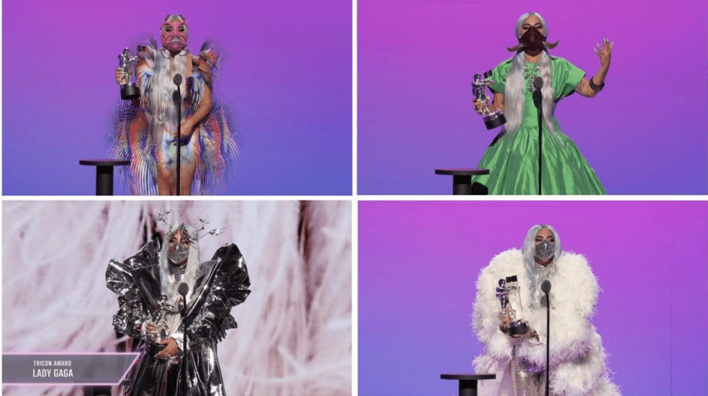 Lady Gaga fue la gran ganadora en los MTV VMAs 2020 esta noche (30 de agosto), llevándose cinco premios. Tres de los trofeos de la estrella se compartieron con Ariana Grande por su pista colaborativa ‘Rain On Me’, que incluyen Canción del año, Mejor colaboración y Mejor fotografía. La pareja también interpretó la pista en vivo por primera vez en la ceremonia socialmente distanciada. Gaga también eligió Artista del año y recibió el primer premio Tricon por su arte y esfuerzos filantrópicos.